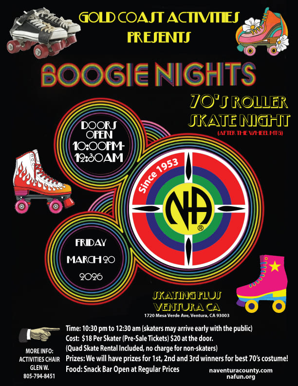 Narcotics Anonymous has many opportunities to socialize and have recovery-oriented fun. Flyers for events being held by the West End Area will be posted on this page in advance of those events.